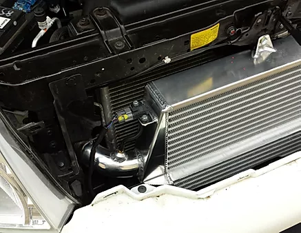 Nissan Navara D40 2.5 Stepped Front Mount Intercooler Kit is the most advanced intercooler kit available for this vehicle platform. Due to space constraints within the front of the D40, mainly the radiator sub crossmember, a lot of coolers we see negatively affect the cores flow rate by a reduction in stacked height or the cooler is placed forward of this bar. This has quite an effect on thermal transfer rates. What we perceived when we began development of this kit was to maintain excellent flow rates and efficient thermal transfer at low vehicle speeds as it is an off road vehicle. Any front mount designed for a off road vehicle should be placed as close as possible to the AC condenser to facilitate superior air flow at low vehicle speeds from the engines viscous fan. If not, the cooler is relying totally on vehicle speed to enable efficient thermal transfer from the intercooler. This simply is not realistic on a off road vehicle, especially one equipped with low range 4x4. We have engineered a system that steps the cooler out and around the crossmember allowing us massive flow rates to to the increased stacked height. The other massive plus here is incredible low speed thermal transfer rates as the cooler is spaced very close to the AC condenser giving unparalleled airflow at low vehicle speeds. Perfect for that low speed 4x4 work you have planned. There is no point upgrading your cooler if it still doesn't work when you want to enjoy the most from your 4x4.